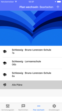 In den letzten Wochen haben wir Updates für die iOS- und Android-App veröffentlicht, die für die Nutzer der Pro-Version (entweder durch den In-App-Kauf oder die Schullizenz) eine neue Funktion beinhalten: Sofern mehrere nach unterschiedlichen Klassen oder Lehrern gefilterte Pläne ausgewählt sind, können diese nicht nur getrennt voneinander, sondern mit der neuen Option Alle Pläne auch gleichzeitig angezeigt werden. Damit hat man einen noch besseren Überblick über mehrere ausgewählte Pläne.